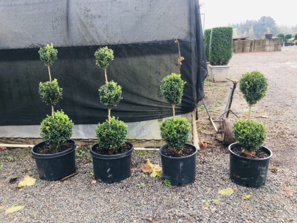 Mix and match a single, double, and triple ball topiary in your garden.
