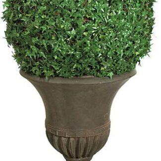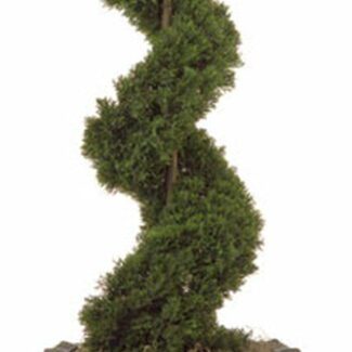 4 – 5 Foot Spiral Boxwood Topiary with 5,346 tips, 23inch Width, 9inch Width at Top 5foot Tall 5,346 tips 23inch Width * 9inch Width at Top * 23inch Foliage at Bottom * Brown Steel Pole and Steel Frame * Two Piece Construction and Hooks Together * Decorative Pot Sold Separately