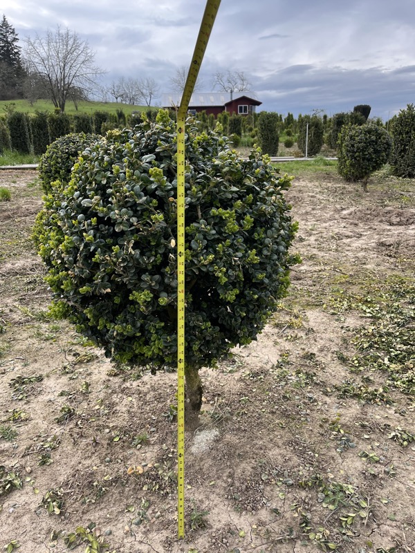 Premium 42/48 Height x 33/36 Head Diameter. Plus a 24-inch root ball. The ball on stem Live Rotundifolia Boxwood Topiary – Hand‑Shaped, Elegant, and Landscape‑Ready