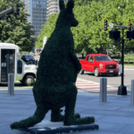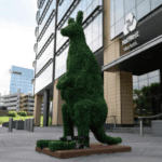 9 foot Kangaroo + Baby with Outdoor Boxwood Foliages