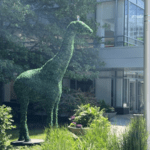 14 foot Giraffe with Outdoor Boxwood Foliages