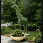 - Design: The topiary features a lifelike giraffe design, meticulously detailed to capture the essence of these majestic animals. The lush greenery covering the frame gives it a dense and vibrant look.