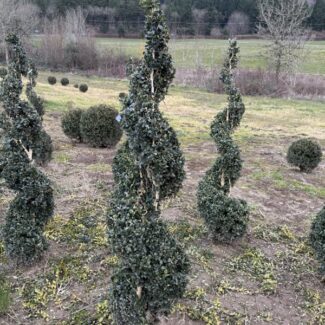 Green Beauty has rounded, blue-green, glossy leaves. It maintains its color through the winter months.