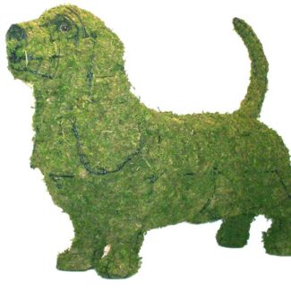 Mossed Doberman Topiary 36 inch x 40 inch x 10 inch. A Doberman topiary is a great addition to your garden. Thisdobberman will look unique, stunning, and beautiful without you having to worry about it eating all of your plants. It is a very large and realistic size at 60″ high, 85″ long and 22″ wide. It is available as a live moss-covered topiary or a simple black topiary frame.