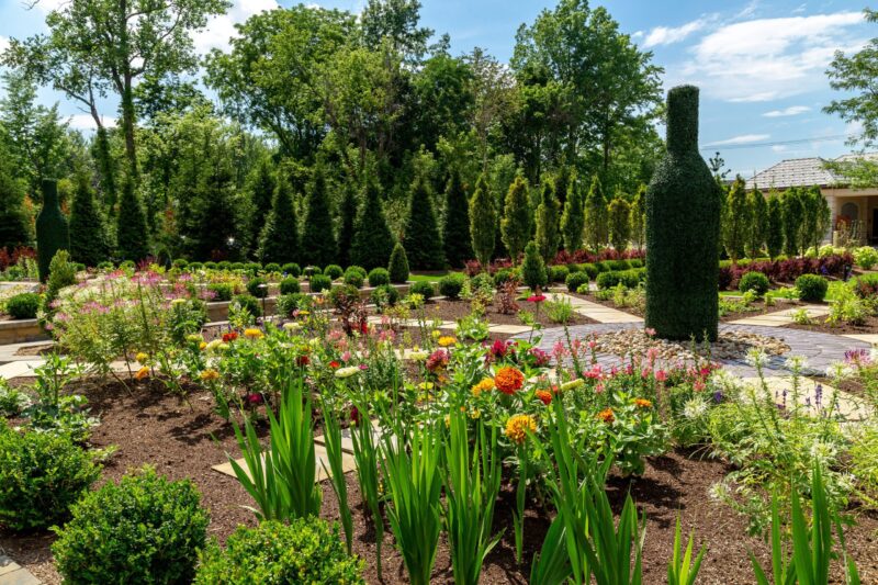 - Product: Artificial topiary shaped like an 18 Foot Topiary Wine Glass and Bottles or any size you want