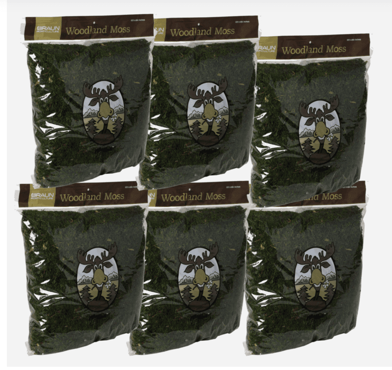 Bags of moss feature a versatile and natural moss option for various landscaping and decorative projects. Each bag contains 2 cubic feet of woodland moss, and the product is sold in a set of 6 bags.